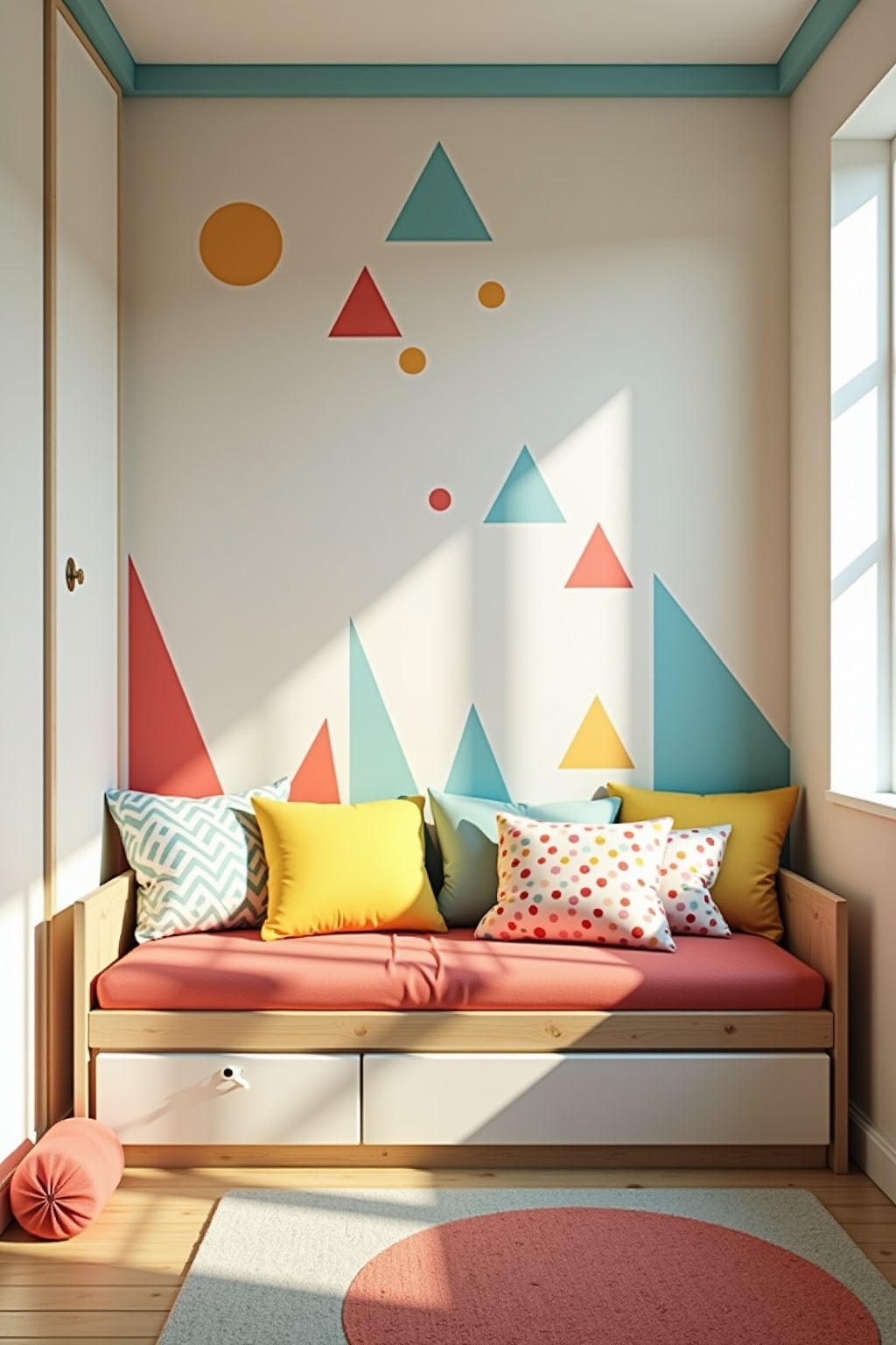Kinderzimmer mit bunten Dreiecksmustern: Kreative Wandgestaltungs-Ideen