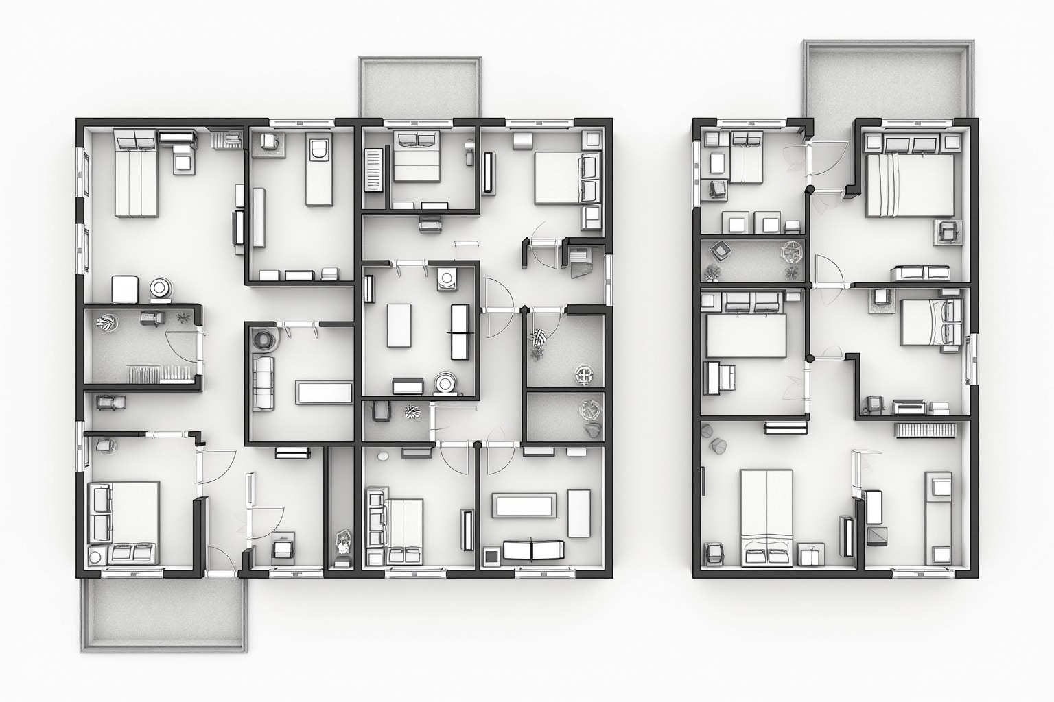 Der Grundriss des Stadthauses ist meist individuell gestaltet und berücksichtigt die besonderen Bedürfnisse der Bewohner. Oft gibt es einen separaten Eingangsbereich, der Privatsphäre schafft, sowie einen großzügigen Wohnbereich mit offener Küche. Im Obergeschoss befinden sich die Schlafzimmer und Bäder, die oft mit hochwertigen Materialien und modernen Ausstattungen versehen sind.
