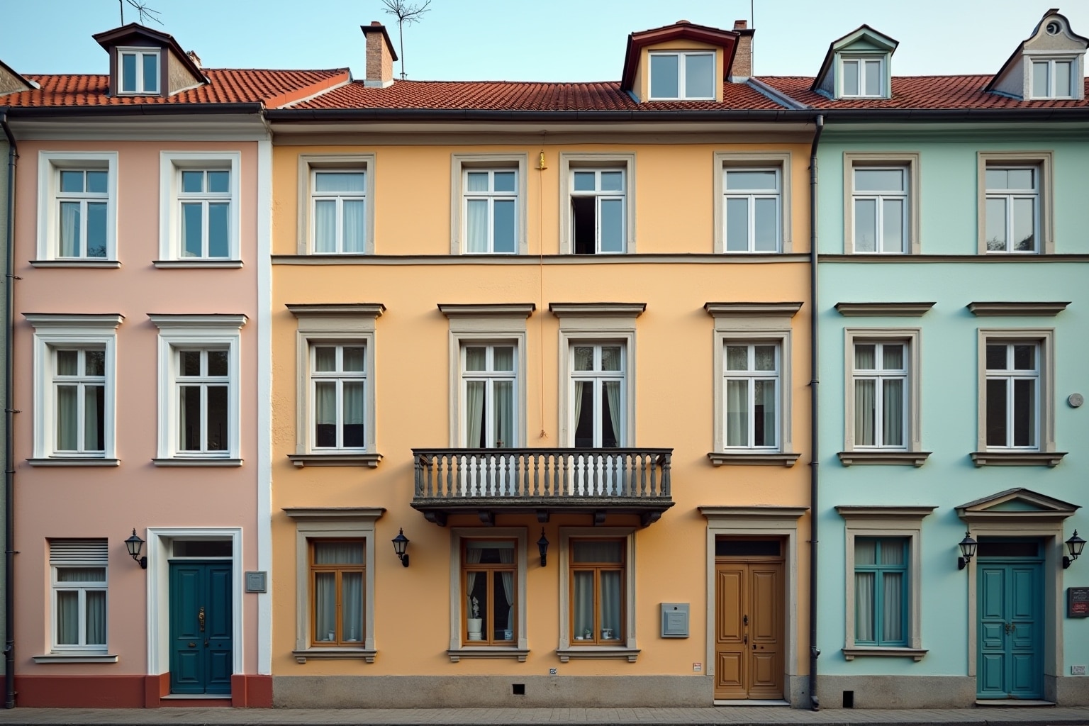 - Jugendstilhäuser: Pastelltöne oder kräftige Farben mit goldenen Akzenten