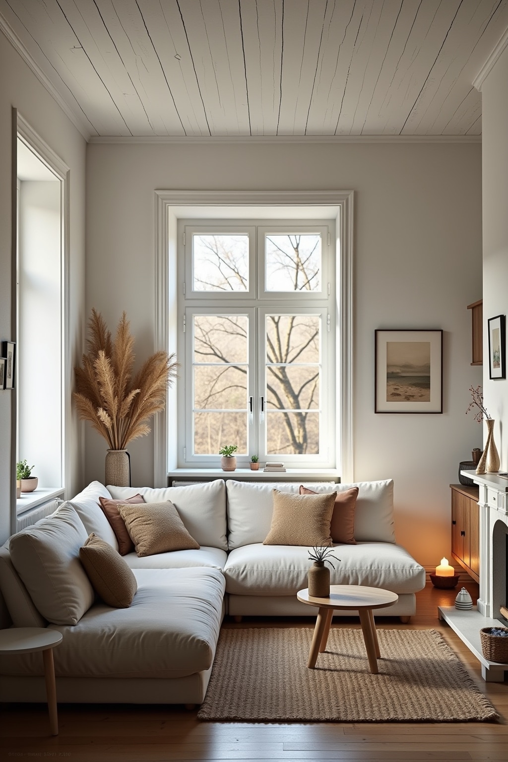 Helle Farben wie Weiß und Cremeweiß lassen Räume mit Holzdecken größer und luftiger wirken.