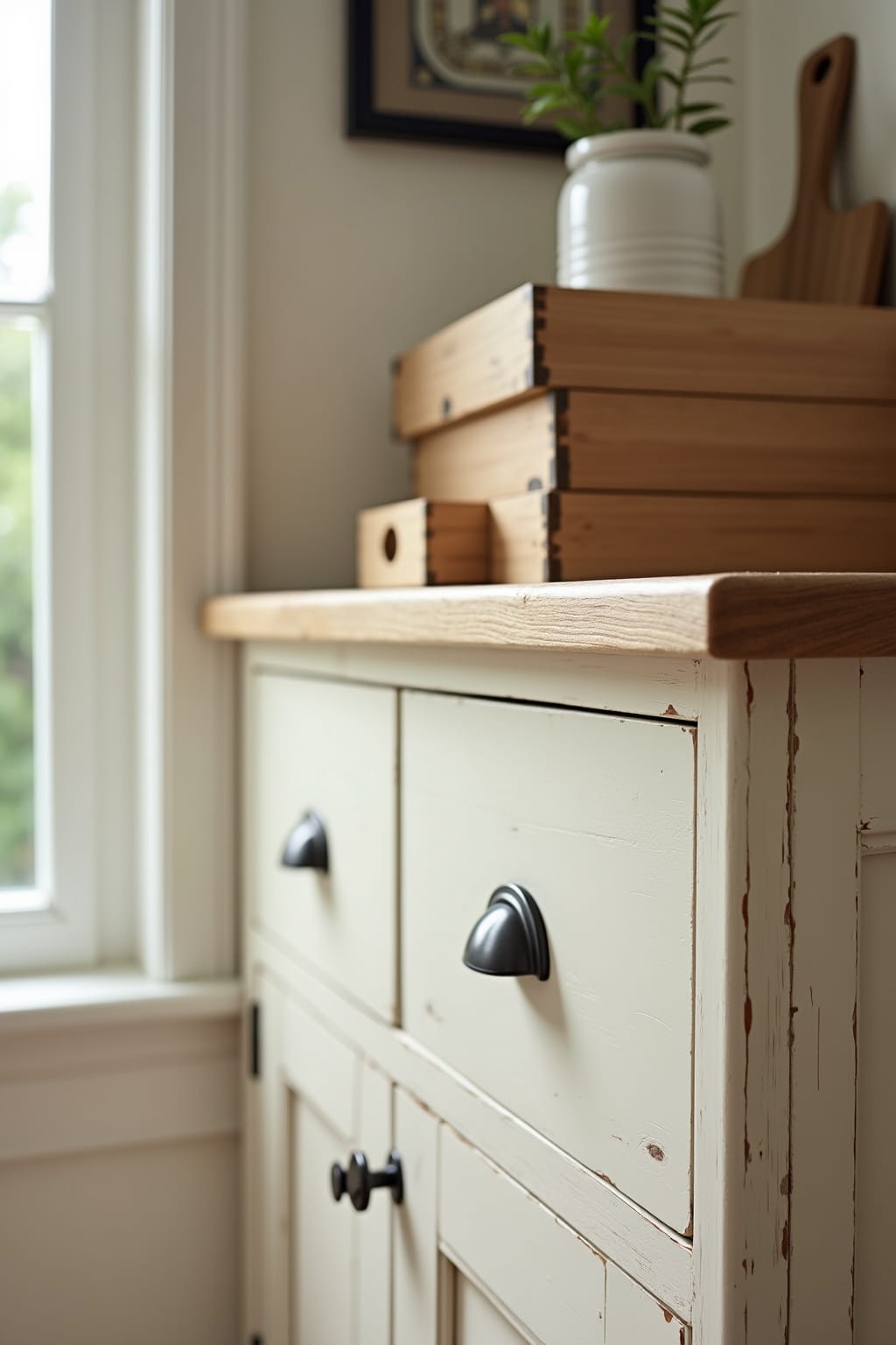 Welche Maltechniken eignen sich, um einem Küchenbuffet einen Vintage- oder Shabby-Chic-Look zu geben?