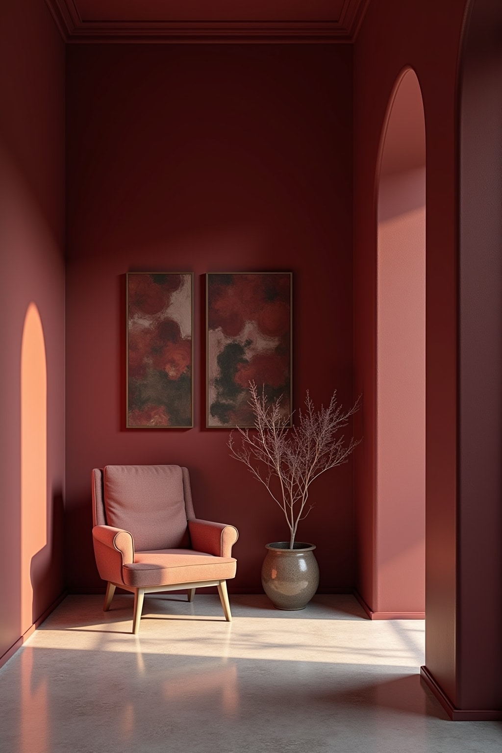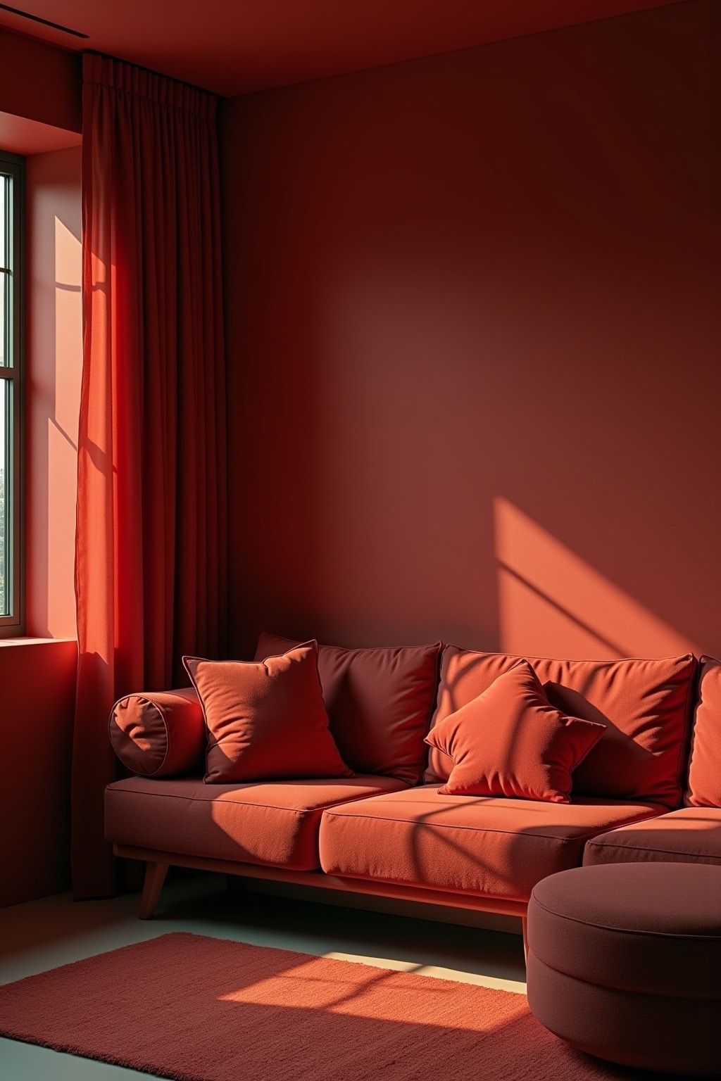 Farbwahl: Hellere Rottöne lassen kleine Räume größer wirken, während tiefe, dunkle Rottöne für Gemütlichkeit in großen Räumen sorgen.